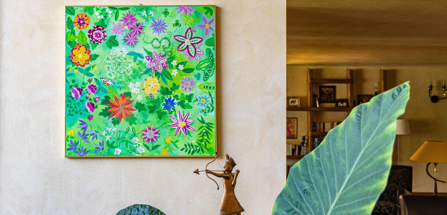 Privită din exterior, casa se dezvăluie ca o machetă în miniatură: mobilierul, cu forme neașteptate și detalii precise, creează puncte de interes vizual, iar culorile intense marchează trasee subtile prin spațiu.